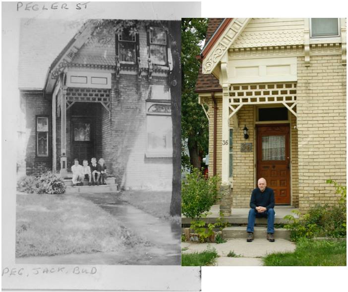 (Photo found on FB of the adult male grandchild sitting where his grandmother, Peg, once sat, 60 or more years later.)