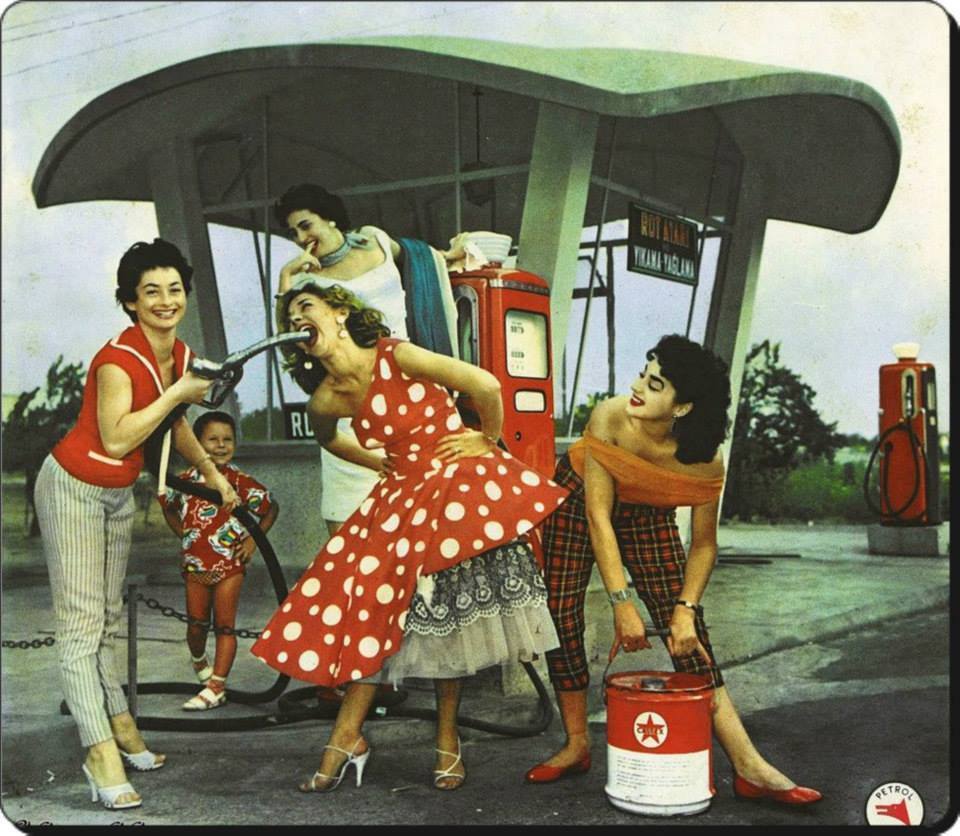 - a woman filling up her car while talking on her cel phone, loudly sobbing the entire time