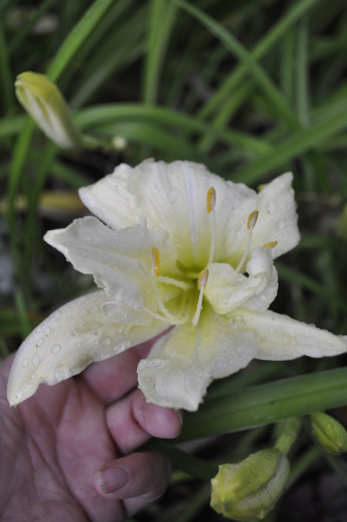 I looked online for answers but couldn’t find any. I emailed a Canadian daylily grower in the area to ask about this. They said the very dry conditions could affect flower development and opening. They also mentioned that the dry weather could cause a greater amount of thrips (tiny insect pest)and said that thrips will often leave small trails where the color is lighter.